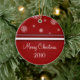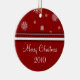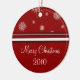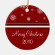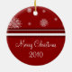 Ornamento do Feliz Natal 2010 em vermelho elegante e no branco com teste padrão festivo do floco de neve. Um presente à moda do Natal para a família e os amigos ou para decorar sua árvore ou casa de Natal para os feriados.