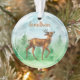 Ornamento personalizado de caçadores de veados com veado branco, floresta e montanhas. Presente perfeito para o caçador de veados ávido. Adicione o ano às costas.