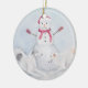 Este ornamento mostra uma reprodução da minha pintura original de aquarela de dois borzoi e boneco de neve.