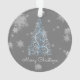 Decorre sua árvore nesta temporada de festas com uma árvore de Natal Azul e Ornament de Flocos de Neve. Design de ornamento apresenta uma vibrante árvore de Natal artística com flocos de neve em queda e um fundo de cinza escuro. Itens adicionais de presentes e feriados disponíveis com este design também.