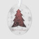 Decorre sua árvore neste feriado com um Ornamento de Árvore de Natal Festivo Vermelho. Design de ornamento apresenta uma vibrante e festiva árvore de Natal enfeitada com cinzas em queda e flocos de neve brancos com um cartões de natal. Itens adicionais de presentes e feriados disponíveis com este design também.