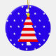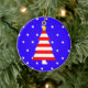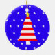 Este Enfeites de natal Americano Patriótico apresenta um fundo azul com estrelas brancas e uma árvore de Natal listrada e vermelha. Uma maneira excelente de mostrar seu espírito americano patriótico na árvore de Natal! Direitos autorais de Henis