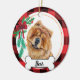 Ornamento Chow Chow com fundo de búfalo vermelho e garland e arco de Natal - Arte foi pintada à mão por mim e disponibilizada como este adorável ornamento! Adicione qualquer texto (sugerido: "Eu ❤️ minha vaca" ou o seu nome de docinho) visite www.curella.net para obter um retrato personalizado, adesivos e muito mais.