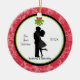 Celebre seu primeiro Natal juntos como casal com este ornamento de manutenção. A silhueta de um casal beijando sob uma concha está em um círculo com um padrão lá fora. Personalize com seus nomes e um ano. Veja os muitos outros ornamentos que temos em nossa loja.