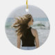 Feliz Aniversário! Celebre um aniversário alegre de um marco com um ornamento cerâmico personalizado de foto preto e ouro redondo. Toda a redação desta modelo (incluindo "Saúde a 21 Anos") é estabelecida para um aniversário de 21 anos, mas é simples de personalizar para qualquer ano ou tipo de evento. Design apresenta um fundo metálico escovado, falso dourado, tipografia do estilo de deco da arte de vintage, caligrafia elegante de script e uma foto de sua escolha. Esta manutenção única e moderna adiciona um toque elegante às decorações residenciais do Natal. Observe que o ouro é impresso a cor, não a folha metálica. Foto de exemplo: Averie Woodard (fonte: @averieclaire no Unsplash).