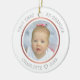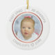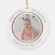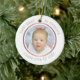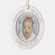 Este Enfeites de natal personalizado apresenta um moderno falso design de ouro rosa. Personalize o nome, o ano e as fotos. Ele tem um lado duplo com uma foto diferente em cada lado. Este modelo funciona melhor com fotos de formato paisagem com o bebê no centro.