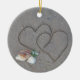 Ornamento De Cerâmica 2 Corações na areia com conchas