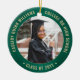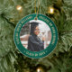 Comemore o feito do formando com um elegante Enfeites de natal de graduação em verde e ouro, com duas fotos redondas. As imagens e todo o texto são simples de personalizar e podem ser diferentes na frente e no verso. (DICAS DE IMAGEM e DESIGN DE TEXTO: 1) Para ajustar a posição do texto, adicione espaços no início ou no fim. 2) Para centralizar a foto exatamente como quiser, recorte-a em forma quadrada antes de carregá-la no site do Zazzle.) Inclua qualquer citação inspiracional favorita, ditado motivacional, nome e grau da escola, parabéns, obrigados, mãe e pai, ou outra mensagem de sua escolha. Design apresenta uma borda verde esfregada de aço inoxidável, nome personalizado da tipografia moderna, escola e ano de aula em círculo, e duas fotos do formando, como fotos ou imagens do mais velho da cerimônia de início. Observe que o ouro é impresso a cor, não a folha metálica. Faz uma ideia séria da formatura.
