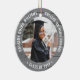 Comemore o feito do formando com uma elegante madeira de cinza e Enfeites de natal branco personalizado de dois fotoredondos. As imagens e todo o texto são simples de personalizar e podem ser diferentes na frente e no verso. Inclua qualquer citação inspiracional favorita, ditado motivacional, nome e grau da escola, parabéns, obrigados, mãe e pai, ou outra mensagem de sua escolha. A design apresenta uma cinza rústica que olha a fronteira, um nome personalizado para a tipografia moderna, a escola e o ano de aula em círculo, e duas fotos do formando, como fotos de mais velho ou imagens da cerimônia de início. Faz uma ideia séria da formatura.