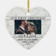 Celebrar um feliz feriado de 1rua como Sr. e Sra. com uma foto personalizada em forma de coração 2, "Nosso Primeiro Casado de Natal", um ornamento falso de cerâmica de mármore. Todo texto e imagens neste modelo são simples de personalizar. (DICA DE IMAGEM: Uma maneira fácil de centralizar uma foto exatamente como você deseja é recortá-la antes de carregá-la no site do Zazzle.) Design apresenta uma na moda preto e branco faux marble border, typewrite typografia, handwrite style script calliographic, os nomes e o ano do casal e duas fotos da sua escolha. Esta única vitória de casamento adiciona um toque elegante às decorações das casas de Natal. A foto de exemplo na frente é de Tim Stagge (Fonte: @tim_stagge em Unsplash).