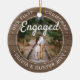 Celebre o feliz feriado de 1rua do seu noivado com uma foto personalizada de 2 "Our First Christmas Engaged", de um ornamento cerâmico de madeira faia arredondada. Todos os textos e imagens neste modelo são simples de personalizar e podem ser diferentes ou iguais em frente e atrás. (DICAS DE IMAGEM e DESIGN DE TEXTO: 1) Para ajustar a posição do texto, adicione espaços no início ou no fim. 2) Para centralizar a foto exatamente como quiser, recorte-a em forma quadrada antes de carregá-la no site do Zazzle.) Como ideia, a tipografia pode ler "Juntos" ou "Casados". Design apresenta uma borda de madeira falsa marrom na moda rústica, caligrafia de estilo manuscrito, os nomes de casal e ano e duas fotos da sua escolha. Esta única vitória de casamento adiciona um toque elegante às decorações das casas de Natal.