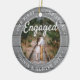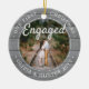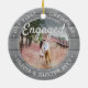 Celebre o alegre feriado de 1rua do seu noivado com uma foto personalizada de 2 fotos "Nosso Primeiro Natal Engajado" de madeira de cinza redonda de ornamento cerâmico. Todos os textos e imagens neste modelo são simples de personalizar e podem ser diferentes ou iguais em frente e atrás. (DICAS DE IMAGEM e DESIGN DE TEXTO: 1) Para ajustar a posição do texto, adicione espaços no início ou no fim. 2) Para centralizar a foto exatamente como quiser, recorte-a em forma quadrada antes de carregá-la no site do Zazzle.) Como ideia, a tipografia pode ler "Juntos" ou "Casados". Design apresenta uma cinza na moda e uma borda de madeira rustica branca, caligrafia de estilo manuscrito, os nomes e anos do casal e duas fotos da sua escolha. Esta única vitória de casamento adiciona um toque elegante às decorações das casas de Natal.