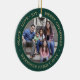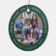 Comemore as alegrias simples das festas com um personalizado ornamento cerâmico verde-foto e cerâmico redondo-ouro. Todos os textos e imagens neste modelo são simples de personalizar e podem ser diferentes ou iguais em frente e atrás. Se preferido, mude "Paz Amor, Alegria Feliz Natal" para qualquer citação ou ditado. (DICAS DE IMAGEM e DESIGN DE TEXTO: 1) Para ajustar a posição do texto, adicione espaços no início ou no fim. 2) Para centralizar a foto exatamente como quiser, recorte-a em forma quadrada antes de carregá-la no site do Zazzle.) Design moderno minimalista apresenta uma borda verde, nome de tipografia na moda e ano e duas imagens de sua escolha. Esta familia única adiciona um toque elegante às decorações das casas de Natal. Observe que o ouro é impresso a cor, não a folha metálica.