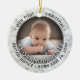 Celebre o presente de precioso de seu mais novo membro da família com uma foto personalizada de 2 "Nosso Primeiro Natal como Avós", um ornamento cerâmico de mármore falso. A design neutra em termos de gênero é adequada para um novo bebê ou netinho. Imagem e todo texto neste modelo são simples de personalizar. (DICAS DE IMAGEM e DESIGN DE TEXTO: 1) Para ajustar a posição do texto, adicione espaços no início ou no fim. 2) Para centralizar a foto exatamente como quiser, recorte-a em forma quadrada antes de carregá-la no site do Zazzle.) Design apresenta uma falsa borda de mármore, a tipografia do estilo na moda vintage art deco, o nome e a data de nascimento do bebê e duas fotos da sua escolha. Esta marca única acrescenta um toque elegante às decorações de casa dos novos avós no Natal. Observe que o ouro é impresso a cor, não a folha metálica. Feliz Natal Vovó e Vovô!
