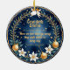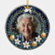 Celebrate a life beautifully lived with our Celestial Comfort two-sided Christmas ornament, featuring a custom photo framed by angelic accents, golden baubles, and winter florals. The reverse side offers a heartfelt tribute with personalized name, dates, and message. Set against a starry midnight blue, this keepsake brings warmth, remembrance, and a gentle glow to your holiday décor.