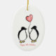 Mulher aniversário de 40 anos personalizada a enforcar decoração com um design de pinguim romântico. Esta decoração moderna é um belo presente para um marido dar a sua esposa quando ela faz quarenta anos. Inclui espaço para uma mensagem personalizada e inclui também a idade da aniversariante. As placas correspondentes também estão disponíveis neste design moderno e ilustrado.