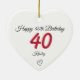 Ornamento De Cerâmica 40th Birthday Red Shadow Monogram heart