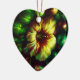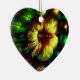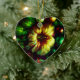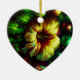 A bold flower the center of attention on the front and back of a heart-shaped ceramic Valentine tree ornament.
