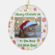 Este Natal, dê à mãe um ornamento personalizado de sua amiga peluda favorita — seu querido gato! Personalize com sua própria foto. A cor e a fonte do texto podem ser alteradas para ajustado de sua preferência.