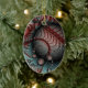 Ornamento De Cerâmica Abstrato Fantasy Fractal Balls Brown Blue Oval