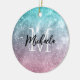 Ornamento De Cerâmica Abstrato Monograma de galáxia verde-rosa-rosa