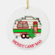 Enfeites de natal de acampamento temático, vermelho e verde, de acampamento de RV vermelho e verde. A mão desenhou um adorável ornamento de feriado personalizado.