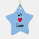 "Nós amamos Ernie" com um design de coração vermelho. Adicione uma foto na parte de trás deste ornamento em forma de estrela.