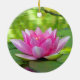 Este ornamento de feriado apresenta um lírio de água rosado refinado que repousa em almofadas de lírio verdes circulares. As reflexões luminosas de água ouro brilham entre as almofadas desta adorável lagoa.