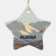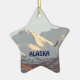 Uma águia careca ao longo da faixa de Chugach coberta pela neve perto de Anchorage, AK. O texto personalizável que exibe "ALASKA" também é exibido.