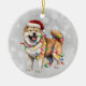 Ornamento De Cerâmica Akita Dog Embalado em Luzes de Natal