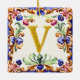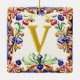 Um “V” dourado em majólica pintada à mão com um toque de conto de fadas.