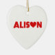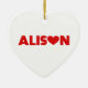 O nome Alison com a letra ou substituída por um coração de amor vermelho. As cores podem ser alteradas.