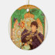 Ornamento com a poster litográfica de Alphonse Mucha Lorenzaccio (1896). O eponímico Lorenzaccio da peça, em que as estrelas Sarah Bernhardt, está vestido de roxo e preto, segurando um livro. Um dragão verde o ignora. Um presente de excelente para fãs de Arte Nouveau e de Arte Checa.