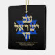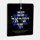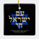 Sou Yisrael Chai hebrew texto com texto personalizado dourado falso e Estrela Azul de David em fundo preto em um lado do ornamento. Bandeira de Israel do outro lado do ornamento. Disponível em muitas formas e materiais. Am Yisrael Chai, As pessoas de Israel vivem, a nação de Israel vive é um hino de solidariedade judaica e uma expressão amplamente utilizada do povo judeu. Texto totalmente personalizável. Estes são excelentes como presentes e favores de Hanukkah.