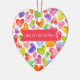 design excelente do Enfeites de natal Vovó com um campo de corações coloridos em aquarela. A parte de trás do nosso ornamento pode ser personalizada com nomes de netos.