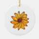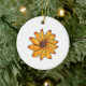 Você gosta de ornamentos bonitos? Este ornamento apresenta um girassol desenhado manualmente feito em marcadores amarelo, marrom, vermelho e laranja.