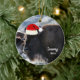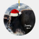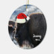 Um bisão americano parece festivo em um chapéu vermelho de Papai Noel.