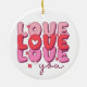Love Love You Romantic Heart Typografia Ornaments apresenta o texto "Love Love Love Love You" em moderno roteiro tipográfico rosa, vermelho e roxo acentuado com bonitinhos doces. Criado por feriados Evco www.zazzle.com/store/evcoholidays