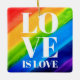 O amor é o amor. Celebre o amor, a igualdade e o Mês do Orgulho de junho. Este Ornamento do Ornado Orgulho é decorado com listras do arco-íris e tipografia na moda em fundo arco-íris de cor d'água, vermelho, laranja, amarelo, verde, azul e roxo. Original Watercolor © Michele Davies.