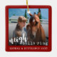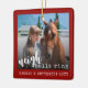 Modelo de Ornamento de Árvore de Natal Personalizado, você pode personalizar o design com uma foto do seu cavalo, com uma frase fofinha e engraçada "Neigh Bells Ring" e seus nomes e ano em um design de tipografia ruidosa festiva.