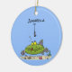 Ornamento De Cerâmica Animação de peixe verde esfomeado e gordo