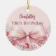 Ornamento De Cerâmica Aniversário dos florais cor-de-rosa