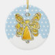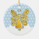 Este ornamento mostra um lindo anjo branco tocando na neve. Esta é a pintura de anjo branco, dourado e amarelo da guardiã, de uma série de sete pinturas de anjo. Esta é uma imagem de anjo excelente a ser usada nos feriados como Natal ou Ano Novo.
