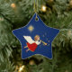 Céu noturno com estrelas brilhando ao fundo. Anjo com trompete de ouro e notas de música