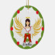 Ornamento De Cerâmica Anjo Vermelho Verde Holly Wreath do Natal Moderno