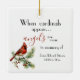 Quando os cardeais aparecem... os anjos estão perto" de uma bela tipografia e um enfeite de memória de script. Um ornamento perfeito para lembrar um amado perdido para enfeitar sua árvore todos os anos. Uma beleza real e um presente excelente para qualquer um. A perfeita manutenção para lembrar aquelas pessoas especiais que perdemos no passado.
