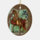 Ano Fantástico do Ornamento Zodíaco Chinês Cavalo! Pintura digital de um cavalo escondido em toda a maravilhosa taca oriental com bruxelas em ponte e sela e bambu no fundo. Direitos autorais da arte para Erin Cooper