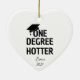 Comemore a grande conquista do formando com este ornamento engraçado de cerâmica "Um grau mais quente". Essa brincadeira e memorável adiciona um toque de humor a qualquer anúncio de graduação ou decoração de feriado. Perfeito por pendurar na árvore ou exibir em um lugar especial para lembrá-los do trabalho e do sucesso do duro. Um presente divertido para formandos, segundo grau ou faculdade, este ornamento certamente trará sorrisos por anos!