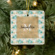 Ornamento De Cerâmica Aqua Cream Dourado Monograma Floral Preto