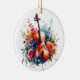 Ornamento De Cerâmica Aquarela Cello e Flores Personalizadas